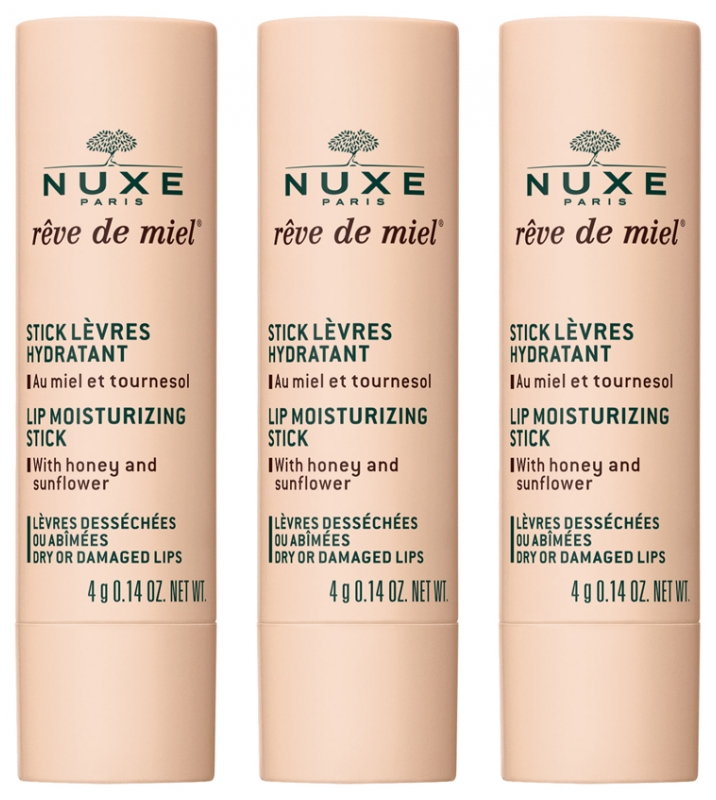 Nuxe Rêve de Miel Stick Lèvres Hydratant Lot de 2 x 4 g + 1 Stick Offert