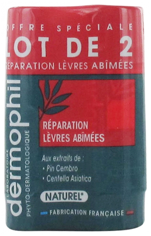 Dermophil Indien Réparation Lèvres Abîmées Stick Lot de 2 x 4 g