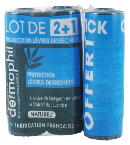 Dermophil Indien Protection Lèvres Desséchées Stick Lot de 2 x 4 g + 1 Offert