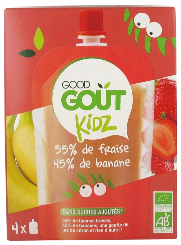 Kidz 55% de Fraise 45% de Banane Bio 4 Gourdes