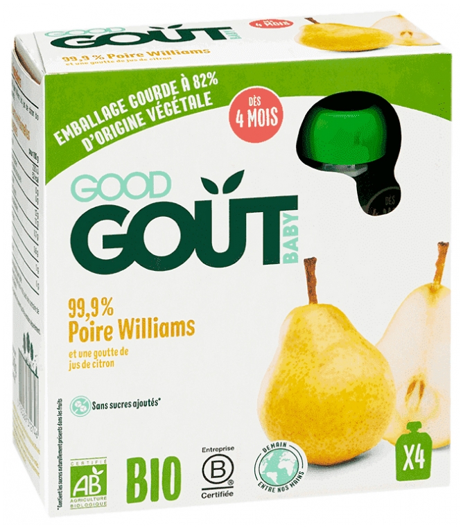 Baby 99,9% Poire Williams Dès 4 Mois Bio 4 Gourdes de 85 g