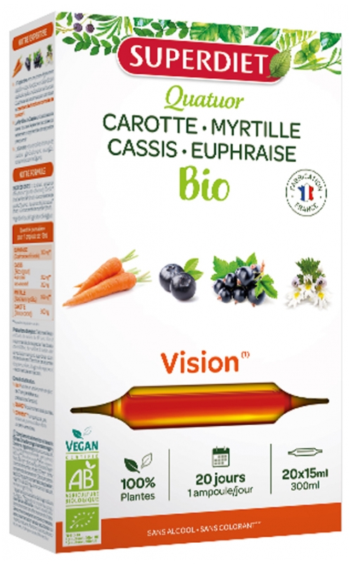 Quatuor Euphraise Vision Bio Carotte Myrtille Cassis Euphraise - 20 Ampoules de 15 ml